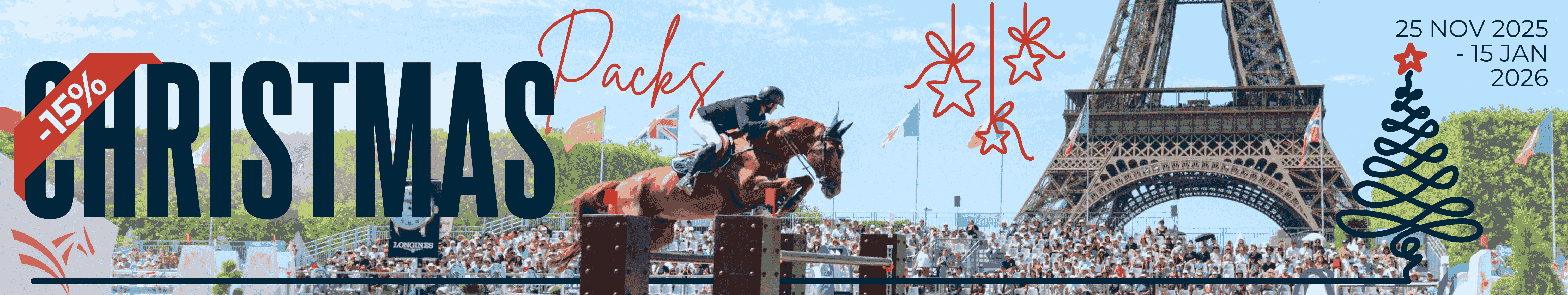 Le LONGINES GLOBAL CHAMPIONS TOUR - LONGINES PARIS EIFFEL JUMPING pense à vous toute l’année ! Devenu incontournable, le Christmas Pack est de retour pour l’édition 2026, et nombreux d’entre vous l’attendaient avec impatience ! N’hésitez plus et offrez-vous, ou faites-vous offrir, une expérience unique pour Noël !